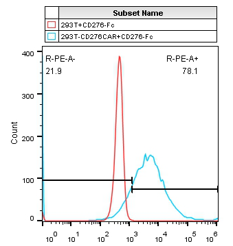 The image on the right shows the 293T binding of CD276-FC protein and overexpressed CD276-CAR detected by FACS